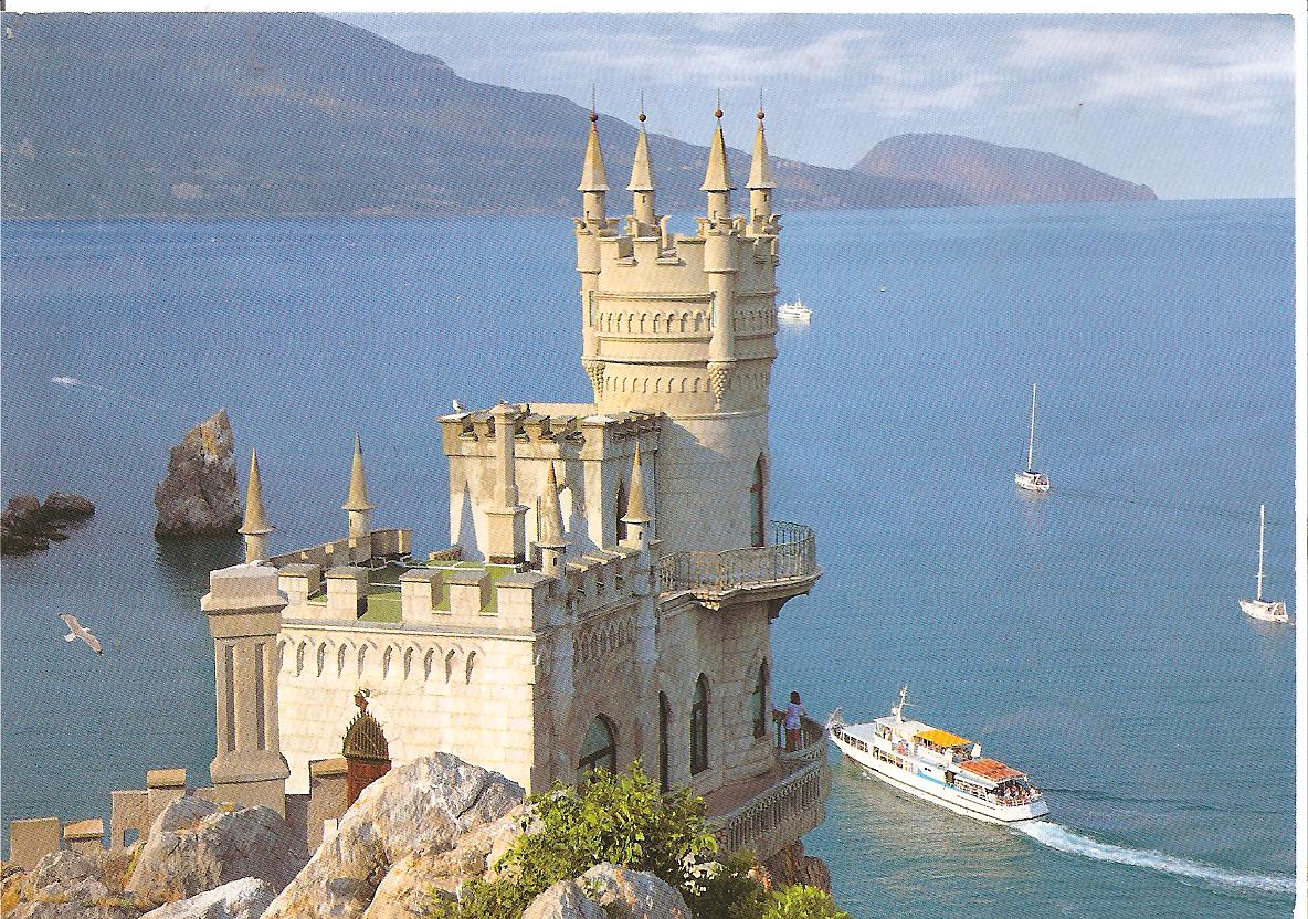 The Swallow’s Nest (Ukrainian: Ластівчине гніздо, Lastivchyne hnizdo) is adecorative castle near Yalta on the Crimean peninsula in southern Ukraine. It was built between 1911 and 1912 in Gaspra, on top of 40-metre (130 ft) high Aurora Cliff, to a Neo-Gothic design by the Russian architect Leonid Sherwood.